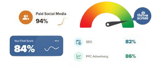 The Thrive Score is a comprehensive evaluation process designed to assess our client’s digital marketing efforts. We utilize a scoring matrix with over 150 factors that gauge the effectiveness of the client’s current approach, providing insights into their strengths and highlighting opportunities for improvement.